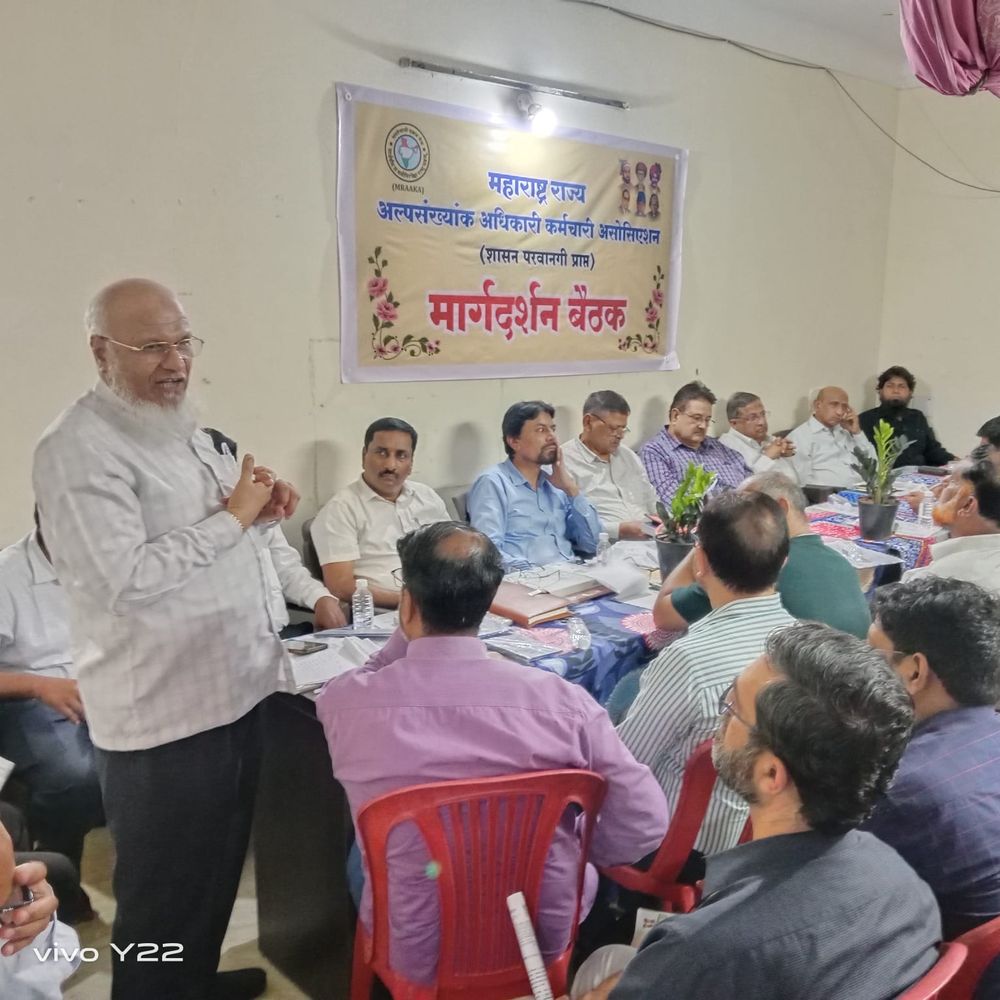 महाराष्ट्र राज्य अल्पसंख्याक अधिकारी कर्मचारी असोसिएशन तर्फे घोरपडी (पुणे) येथील निवासी प्रशिक्षण केंद्रामध्ये मराक्का ची पुणे विभागीय मार्गदर्शन बैठकीचे आयोजन शनिवार दिनांक १९/१०/२०२४ रोजी करण्यात आलेले होते. या बैठकीची सुरुवात अल्लाह स्तुती करून केली .